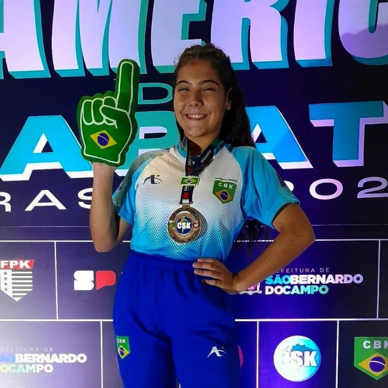 A karateca Ana Luiza Santos, 16 anos, de Tubarão, conquistou a medalha de ouro na categoria Junior - 53kg e contribuiu para o Brasil ser campeão geral do Sul-Americano de Karatê, realizado em São Bernardo do Campo (SP). A jovem competiu como atleta da seleção brasileira entre os dias 24 e 29 de abril.