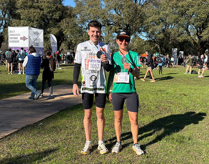 Os atletas Vinicius Miranda, de Tubarão, e Iasmin Chacur Fujita, de Florianópolis, participaram da Meia Maratona de Buenos Aires, na Argentina, no último domingo.