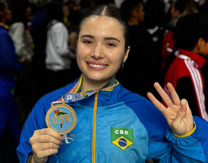 A vitória da jovem veio no kata sub-21. Para conquistar o lugar mais alto do pódio, ela enfrentou caratecas da Argentina, Venezuela, Peru e fez a final contra outra atleta do Brasil.