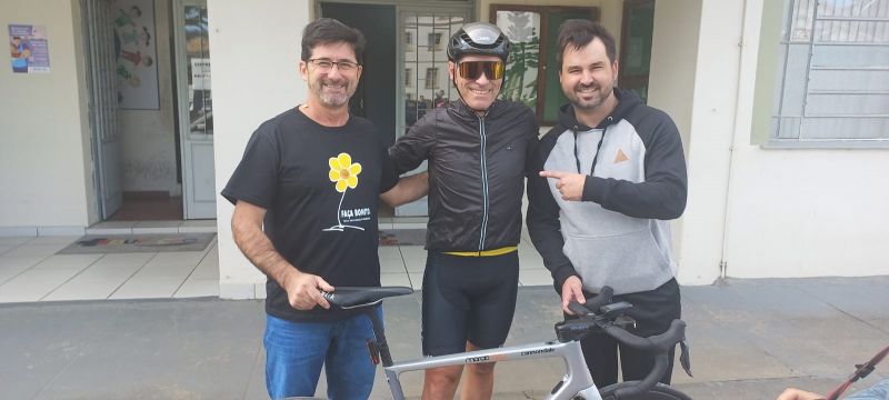 Nesse período, o atleta passará por 66 cidades de todo o Estado. Nesta semana, ele passou por Armazém, onde foi recebido pelo prefeito e outros ciclistas.