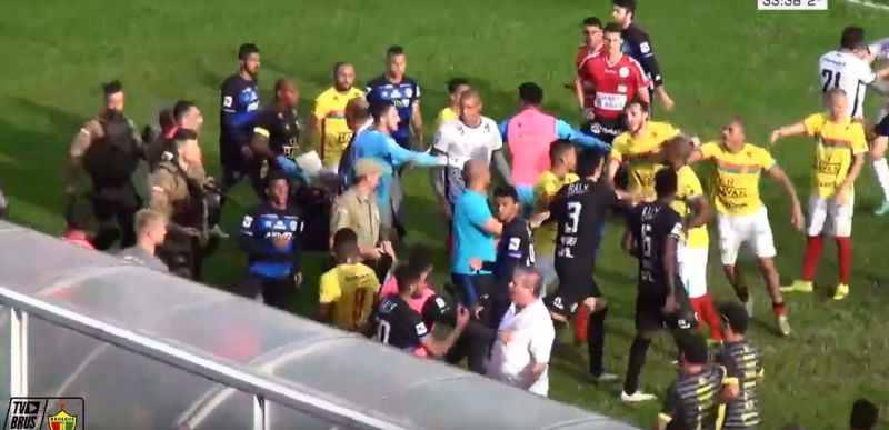 Aos 33 minutos do segundo tempo, uma confusão generalizada tomou conta do campo, fazendo com que a Polícia Militar precisasse intervir. Outro ponto negativo do jogo aconteceu ainda no primeiro tempo, quando o técnico Pingo, do Tubarão, foi atingido por uma garrafa, que teria sido atirada da arquibancada. Após a partida, o goleito Belliato confirmou que esse foi o último jogo dele pelo Peixe.
