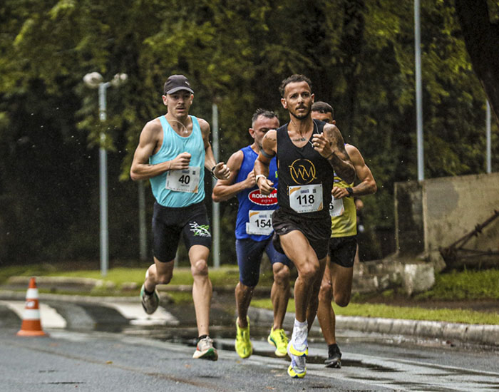 Os atletas percorreram as ruas que margeiam o rio Tubarão debaixo de muita chuva