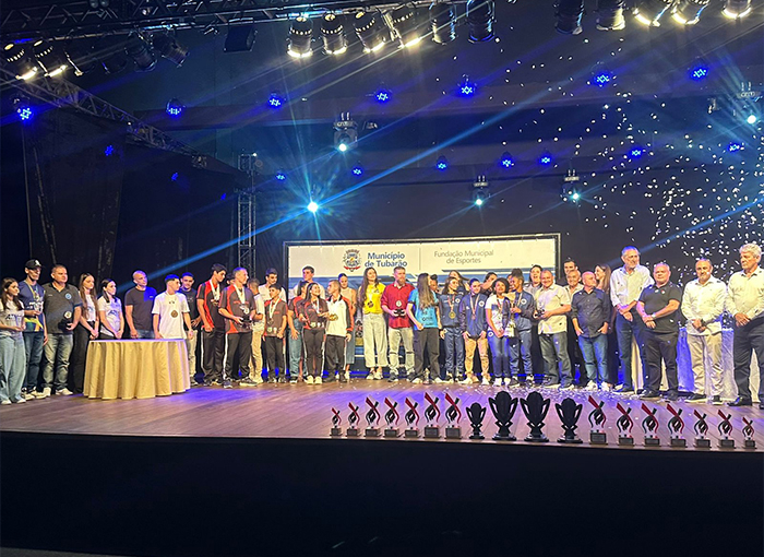 O teatro da Arena Multiuso Prefeito Estêner Soratto da Silva, em Tubarão, teve uma noite de quarta-feira especial com a entrega do Prêmio Salim Mussi Miguel aos destaques do esporte nas temporadas 2023 e 2024.