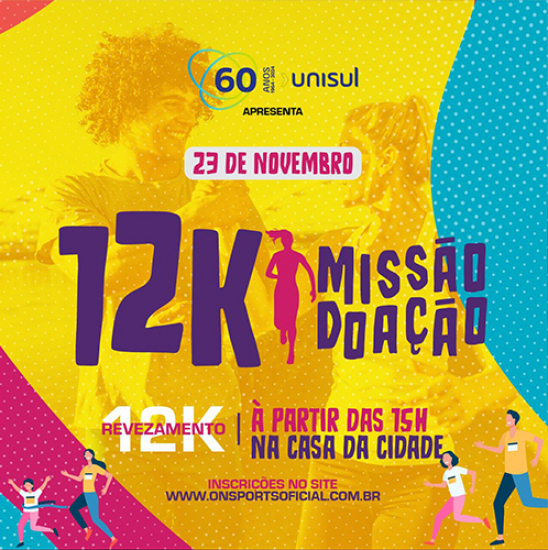 Serão duas provas: uma caminhada de 4 km e uma corrida solidária de revezamento com 12 km. Entidades e empresas da cidade promovem a programação, onde o valor das inscrições será todo revertido em prol de 15 organizações habilitadas. A Missão Doação 2024 contará ainda com venda de produtos produzidos pelas entidades e apresentações artísticas de seus alunos.