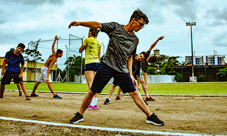 Segundo a técnica, o treinamento para a garotada é diferente do aplicado para os adultos. “Não são atividades específicas de uma prova. Eles primeiro estão desenvolvendo todas as capacidades físicas, como resistência, velocidade, força e potência”, explica. Depois, cada jovem experimentará diferentes provas, passando a treinar para aquela que tiver melhor aptidão.