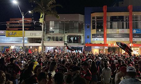 Torcedores do Flamengo saíram às ruas de Tubarão no sábado à noite para comemorar o terceiro título da Copa Libertadores da América. A Praça 7 de Setembro, no Centro, ficou tomada pelos rubro-negros, que também percorreram a cidade em carreata e buzinaço.