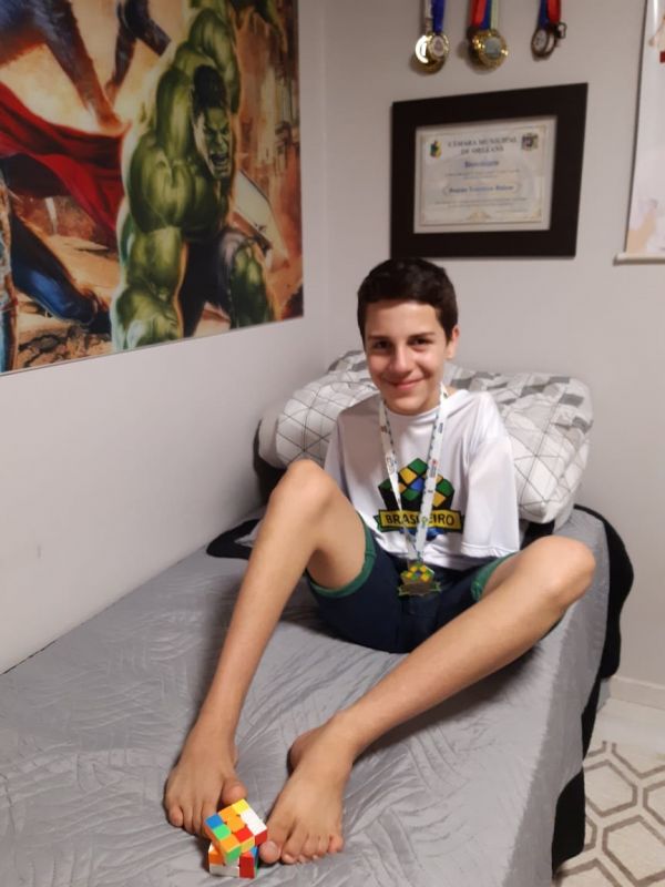 O título foi conquistado na grande final em pouco mais de 32 segundos, na categoria 3x3x3 com os pés. Foram oito disputas, com competidores de todo o Brasil. Em agosto, Gustavo foi destaque aqui no DS por se destacar na realização do cubo mágico com os pés. Ele treina os chamados esportes da mente desde os quatro anos. O contato com os jogos começou na escola onde estuda, no Centro Educacional Meta.
