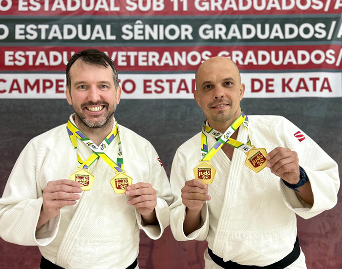 Representando a Associação Tubaronense de Judô, os professores Jaison Cristian da Cunha Tavares e Wanderlei Kalpezinski conquistaram o título estadual em duas modalidades de kata: katame-no-kata e nage-no-katas