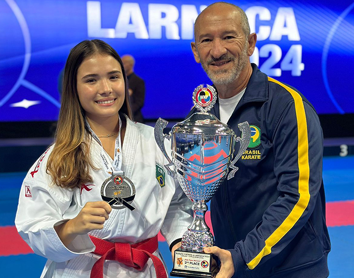 A atleta Letícia de Souza Cardoso, de Braço do Norte, subiu mais uma vez ao pódio neste fim de semana, agora pelo Campeonato de Karatê 1 - Séries A, realizado em Lárnaca, no Chipre.