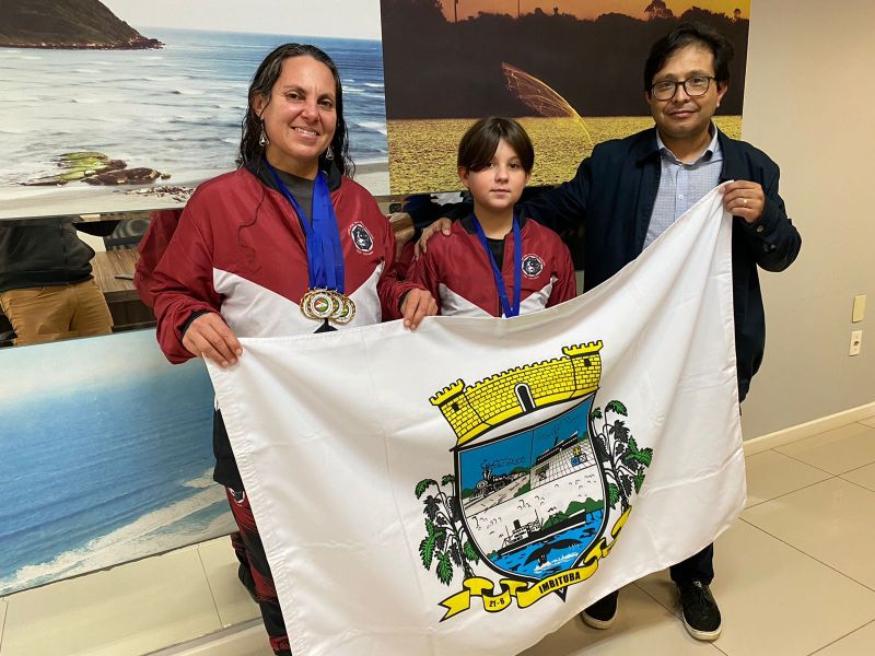 Na tarde desta quarta-feira, a dupla visitou o prefeito Rosenvaldo da Silva Júnior, apresentou as medalhas, conversou sobre projetos e recebeu uma bandeira do município.
