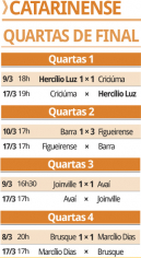 Adecisão de quem segue para as semifinais do Catarinense, entre Hercílio Luz e Criciúma, ficou para o próximo domingo.