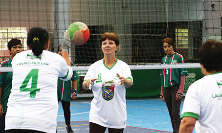 “A atividade é adaptada para que eles possam ter um envelhecimento saudável. O projeto beneficia a comunidade e indivíduos que aqui residem, ofertando uma atividade de lazer ativo para uma melhor qualidade de vida para os idosos de Lauro Müller”, explica a coordenadora do Vovôlei e do Centro de Referência de Assistência Social (Cras) do município, Nivalda Silvestre.