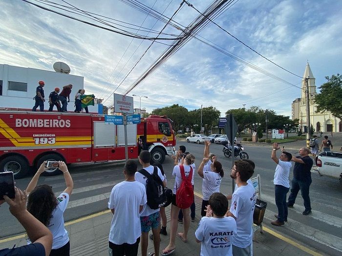 A braçonortense Letícia Cardoso, campeã sul-americana de karatê na categoria júnior, foi recebida na tarde desta segunda-feira com muita festa no município. Ela desfilou no caminhão do Corpo de Bombeiros pela cidade ao lado do técnico e pai, Carlos Augusto Cardoso. Depois, foi recepcionada pelo prefeito Beto Kuerten Marcelino, pelo vice-prefeito Ronaldo Fornazza e pelo diretor da Comissão Municipal de Esportes (CME), Pedro Baschiroto.
