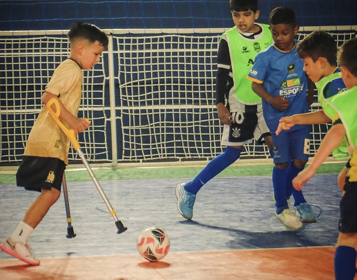 Artilheiro do sub-8 da escolinha municipal de Jaguaruna, Guilherme teve a vida transformada em 2022, quando foi diagnosticado com um câncer ósseo agressivo. Aos cinco anos, precisou amputar parte da perna direita. Mesmo diante desse desafio, nunca desistiu do futebol, sua grande paixão.