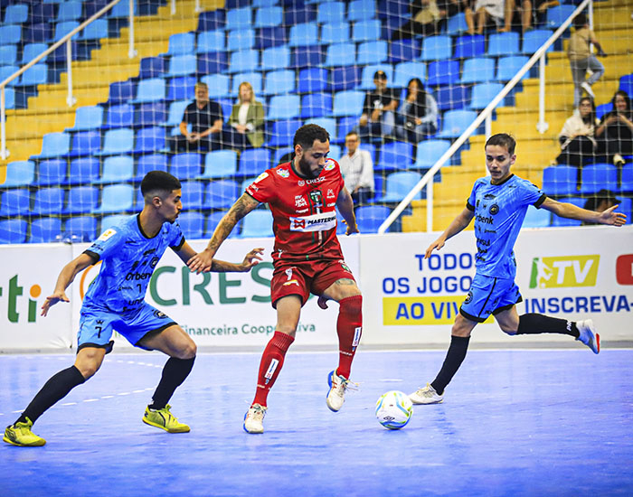 O time visitante abriu os trabalhos no primeiro tempo com gol de Lucas. Na segunda etapa, o Tubarão empatou graças a Dé. Mas, na sequência, Lucas decretou a vitória para a equipe de Toledo (PR).