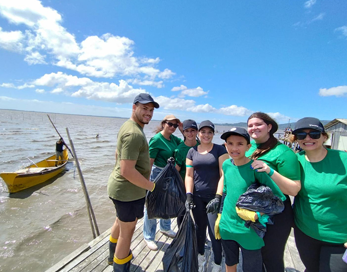 Enquanto alguns atuavam em terra firme, outros se aventuraram na água para alcançar o lixo mais distante. O diretor legislativo Kauan Francelino Almeida improvisou varas para recolher resíduos, e Muriel Sabino conduziu uma embarcação para facilitar a tarefa, um verdadeiro trabalho em equipe em prol da natureza.