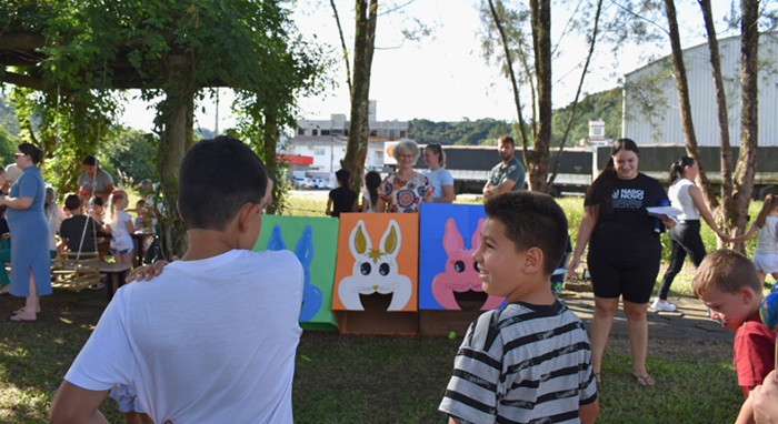 Várias oficinas foram oferecidas no local: pintura de bolachas e em ovos, cineminha, contação de histórias e atividades de colorir. As oficinas foram organizadas e conduzidas por voluntárias. “Nosso evento só foi possível graças ao empenho das nossas voluntárias, que dedicam parte do seu tempo livre em ações como esta”, destaca a primeira-dama e presidente da Associação Beneficente de Rio Fortuna (Abraf), Cristiani Brettos Goulart Ballmann.