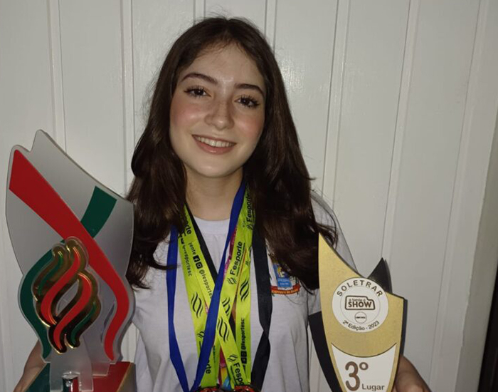 Este ano ela conquistou o primeiro lugar regional no Jesc, competindo com alunas de Capivari de Baixo, Tubarão e Jaguaruna, e representou o município na etapa estadual do Jesc em Blumenau, onde ficou entre as 15 melhores.