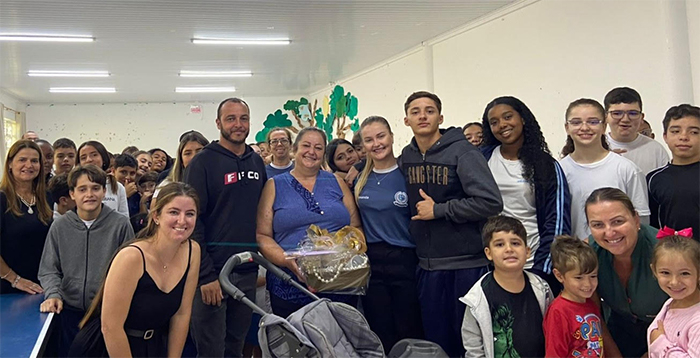 A coordenadora pedagógica Jucinéia Rech Marcelino Fidelis se aposentou nesta semana, após 35 anos de atuação na rede pública, em Gravatal. Ela recebeu uma homenagem preparada por alunos e colegas da Escola José Cardoso de Aguiar, em Várzea das Canoas.