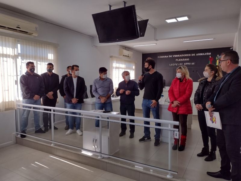 Nessa terça-feira, o prefeito Luiz Mendes e o vice, Guilherme Heerdt Corrêa, assinaram e entregaram a ordem de serviço à empresa vencedora da licitação, autorizando o início da obra de pavimentação asfáltica do trecho de 6,8 quilômetros da rodovia municipal AZM-66, do trevo de acesso da SC-435, até a comunidade de Santa Teresinha, mais precisamente até em frente à empresa Água Mineral Armazém.