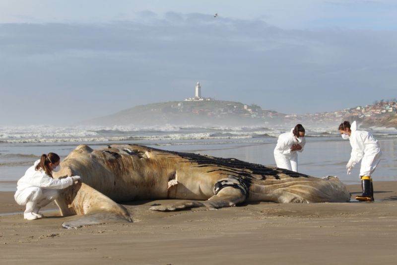 De acordo com Fundação Lagunense do Meio Ambiente (Flama), a baleia encontrada encalhada na última sexta-feira era juvenil e tinha cerca de sete metros de comprimento. Ainda de acordo com a prefeitura, uma avaliação preliminar identificou uma fratura no crânio do animal, mas equipes do Laboratório de Zoologia da Universidade Estadual de Santa Catarina (Udesc), com apoio do Projeto de Monitoramento de Praias (PMP), coletaram amostram que serão analisadas para determinar com precisão a causa da morte da baleia.