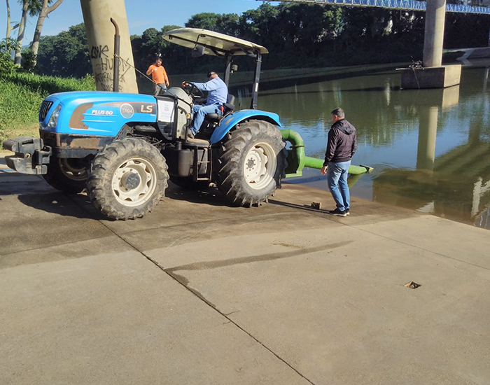 A bomba provisória terá sua força motriz disposta por um trator agrícola.