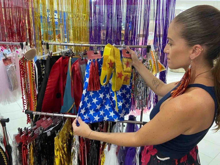 Segundo Aline Vargas, proprietária da loja Empório do Pano, em Tubarão, a venda de fantasias e acessórios acaba acontecendo bem perto do início do Carnaval.