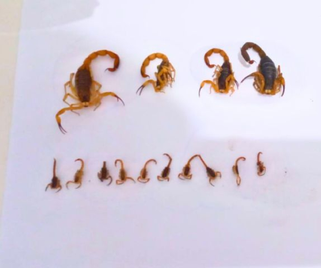 Logo no início da ação, um escorpião foi encontrado durante a varredura. No período noturno, as equipes capturaram três escorpiões adultos e dez filhotes, totalizando 14 exemplares apreendidos pela força-tarefa.
