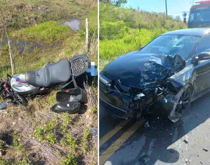 Batida envolveu carro e motociclista na SC-390