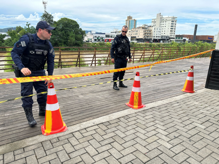 O prefeito Estêner Soratto e o vice-prefeito Denis Matiola solicitaram nesta quinta-feira (02) a interdição do deck da rua Lauro Müller, no Centro, em Tubarão. O impedimento da circulação no local foi determinado após uma avaliação inicial que indicou avarias em diversas madeiras que revestem o espaço.