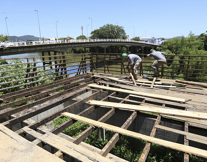 A empresa Allianz Construção de Obras está realizando nesta semana a primeira etapa da obra de reforma e requalificação do deck às margens do Rio Tubarão, na rua Lauro Müller.