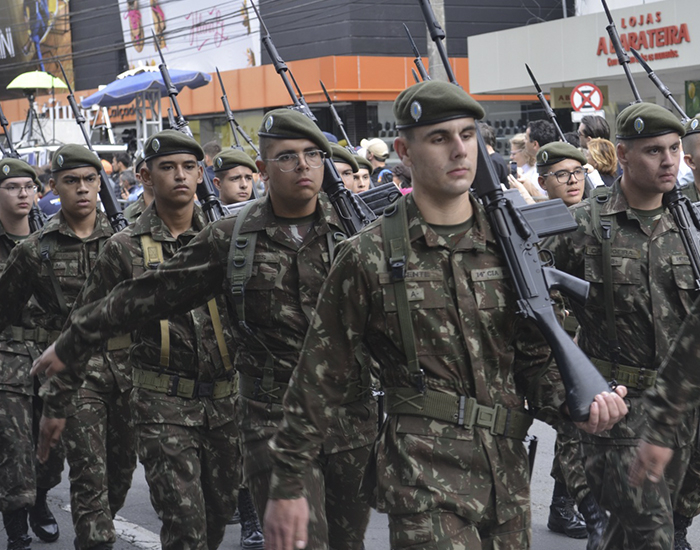 Após a abertura oficial, a 14ª Cia de Infantaria abre o desfile, dando início à passagem dos demais pelotões das forças de segurança que integram o Bloco A.