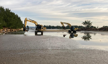 Antes mesmo do convênio com o governo do Estado ser anunciado, o processo de desassoreamento da Barra do Camacho, em Jaguaruna, já teve início, com a retirada de areia através de máquinas escavadeiras.