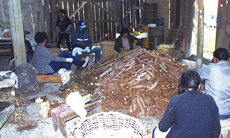 Mas seu Manoel não estava sozinho. Três metros dali, um grupo de sete ou oito mulheres raspava mais um lote de mandioca, que mais tarde viraria farinha e beiju, de outro núcleo familiar.