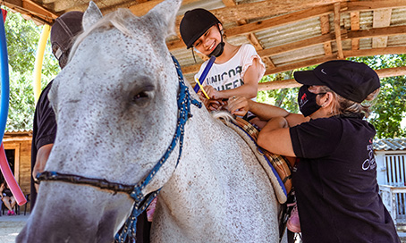 Para a fisioterapeuta responsável, Ana Paula Cereja Higino Damiani, os principais benefícios da equoterapia estão em desenvolver força, equilíbrio e a atenção. “Trabalhamos as amplitudes de movimento, questão de segurança, de autoestima, autocontrole, questão de ansiedade. Desenvolvemos também a parte pedagógica, trabalhando com muitos materiais lúdicos que incentivam a fala e a linguagem, através de orientações da fono também”, diz a fisioterapeuta.