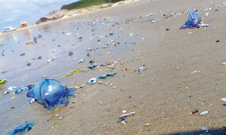 Moacir Medeiros Fogaça/Colaboração/Agora Laguna/DS O surgimento de uma espécie de molusco, chamado de dragão-azul, trouxe o alerta de especialista. O animal foi visto na praia do Gi, em Laguna, esta semana.