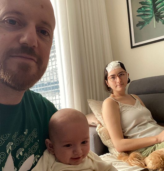 Horas depois, por volta da meia-noite, Daniela começou a passar mal, com visão turva, dificuldade na fala e perda de movimentos do lado direito do corpo. Ela foi encaminhada com urgência para exames e recebeu o diagnóstico de AVC hemorrágico grave, sendo submetida imediatamente a uma cirurgia de emergência, conta o marido.