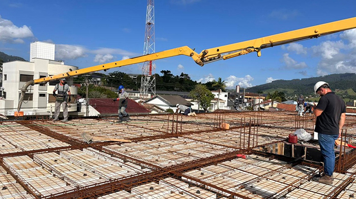 A concretagem da última laje do prédio da nova sede da Prefeitura de Gravatal, representa o encerramento da fase estrutural da construção e aproxima ainda mais a conclusão do espaço destinado ao atendimento da população.