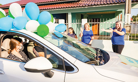 Na data e hora marcadas, na última sexta-feira, Samira foi chamada até a frente de sua casa e, sem acreditar no que estava vendo, recebeu o grande presente. Dezenas de carros, enfeitados com balões e cartazes dando as boas-vindas a Benício, passaram buzinando pela casa da família, todos deixando os presentes, conforme o protocolo de distanciamento social estabelece.