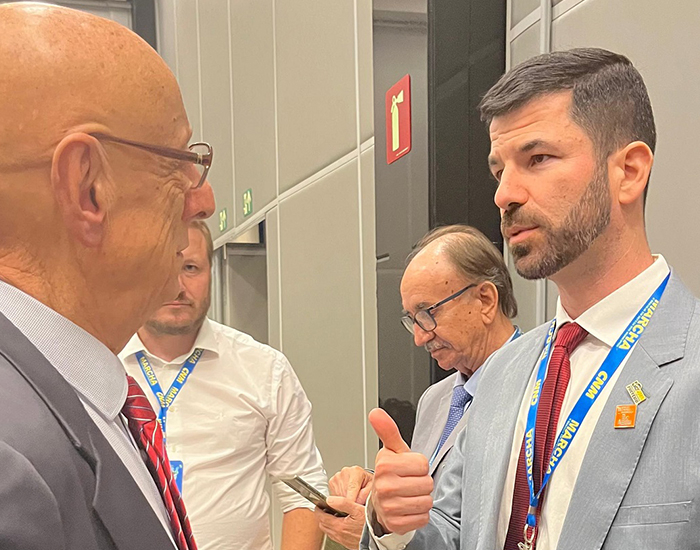 Um dos principais compromissos da viagem foi a articulação política. Dentre elas, o prefeito se reuniu com o senador Espiridião Amin durante o Fórum Parlamentar da Fecam. No encontro, Clei pleiteou apoio e recursos para viabilizar a revisão do Plano Diretor. “Essa é uma ação importante e fundamental para orientar o nosso crescimento urbano, preservar áreas ambientais e atrair investimentos”, destaca Clei.
