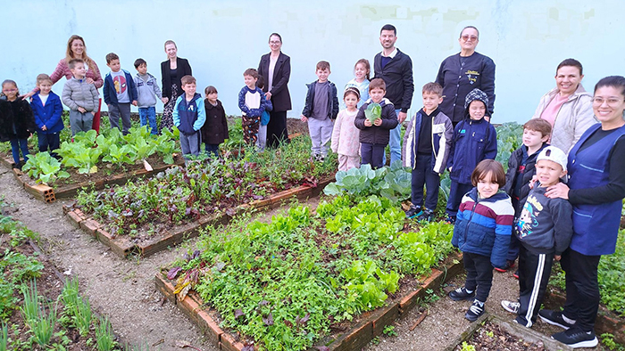 Lançado em 2022 na Escola Municipal Naíde Guedert Teixeira, o projeto transforma o espaço escolar em um ambiente de aprendizado prático. Nele, os alunos cultivam hortaliças e aprendem sobre alimentação saudável, sustentabilidade e preservação ambiental desde cedo.