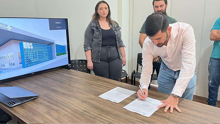 Foi assinada ontem ordem de serviço para a construção da nova Unidade Básica de Saúde de Gravatal. O projeto, um investimento de mais de R$ 2,2 milhões, será construído nas proximidades da SC-370, no Centro.