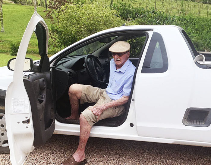 Aldo Felippe, de Pedras Grandes, mantém rotina ativa e ainda desbrava arredores da cidade dirigindo seu veículo