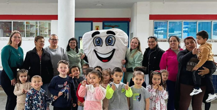 Durante as visitas, as equipes de saúde trabalham com dinâmicas e orientações sobre alimentação saudável, higienização correta dos dentes e a importância de consultar o dentista regularmente.