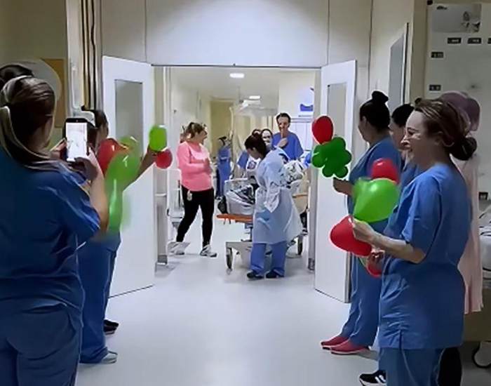 Equipe do HNSC celebrou a alta do paciente com homenagem e emoção