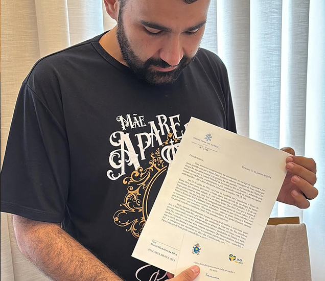 O morador de Pescaria Brava Murilo Medeiros também tem uma história com o papa Francisco. Em 2013 ele participou da Jornada Mundial da Juventude, no Rio de Janeiro, e lá entregou uma carta ao líder religioso. “Para minha surpresa, em janeiro de 2014, essa carta foi respondida. Um gesto que confirmou aquilo que ele sempre foi: um pastor próximo, humano, jovem de alma e grande de coração”, escreveu o jornalista nas redes sociais. A carta enviada pelo Vaticano também veio acompanhada de um cartão, assinado pelo papa.
