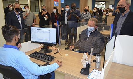 O primeiro atendimento do Facilita Tubarão no dia de sua inauguração foi simbólico e, nesse caso, para o “cidadão” Joares Ponticelli. O prefeito foi ao balcão de atendimento, retirou uma senha e foi ao guichê do jovem aprendiz Jeferson Miranda, de 15 anos.