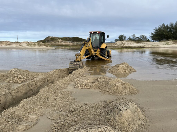 A prefeitura de Laguna, por meio de ação emergencial solicitada pela Defesa Civil do município, realizou uma intervenção na Praia do Gi para abertura de um novo canal de escoamento do rio.