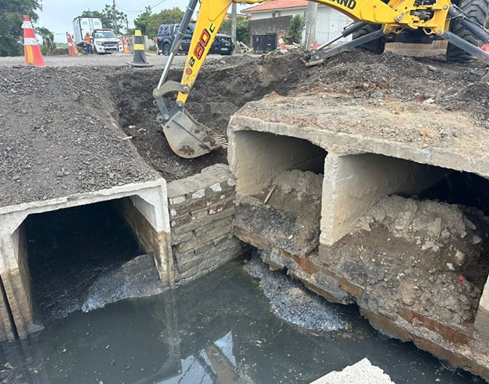 A primeira etapa, que compreendeu a instalação das aduelas, já foi concluída. No momento, as equipes trabalham na execução da caixa de passagem responsável por interligar o fluxo da drenagem proveniente da galeria da Aldo Hülse — popularmente conhecida como Vala da Vina — com a rede que percorre a avenida Visconde de Barbacena.