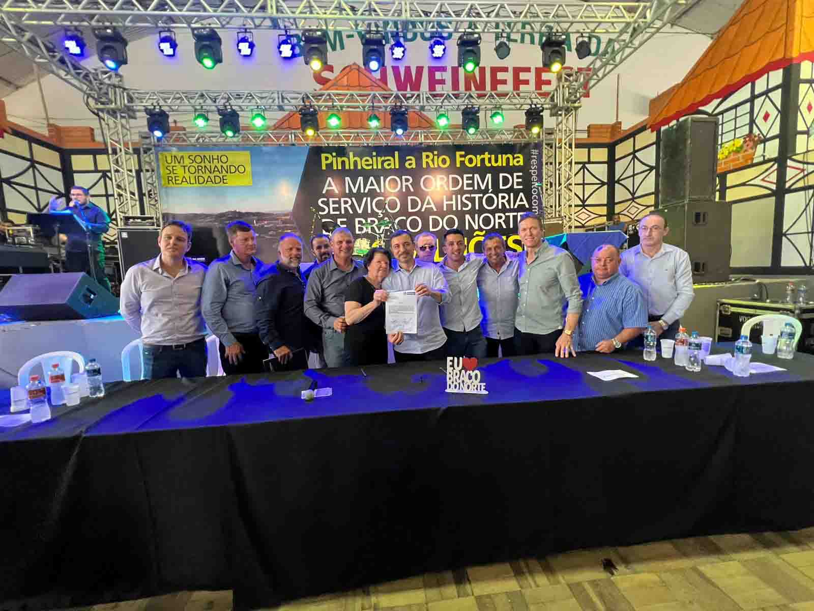 “Vai unificar e estreitar a ligação entre os dois municípios. Somos reconhecidos pela força da agroindústria, dos laticínios. Cerca de 30% da receita de Braço do Norte vem do agro e o mais solicitado pelas comunidades é um acesso de qualidade. Essa pavimentação vai melhorar ainda mais nossa economia. É a maior ordem de serviço em pavimentação dos 67 anos do nosso município”, relatou.